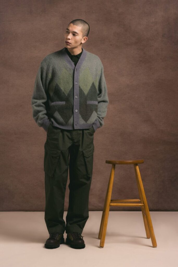 Unter den neuen Styles finden sich Stücke, die man sofort als zukünftige Klassiker der Marke erkennt: die Pathead Puffa Vest, das Logie Oversized Shirt aus Nesselmischgewebe, der Muirfield Argyle Cardigan aus gebürstetem Mohair – und die Rückkehr der Luss Combat Pant, für alle, die das Praktische gerne mit dem Lässigen verbinden.