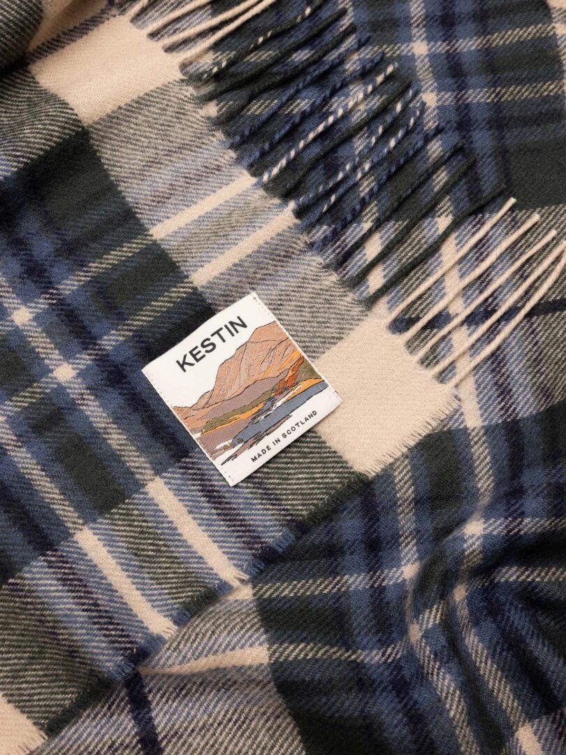 In Zusammenarbeit mit den Webern von Lochcarron of Scotland entstand ein Muster, das die DNA der Marke perfekt einfängt: Dunkles Navy und Waldgrün für Meer und Landschaft, Himmelblau für die Weite, ein Hauch Ecru als Lichtblick. Zusammen bilden sie ein Farbbild, das Schottlands Seele einfängt – vom rauen Küstenwind bis zum klaren Winterhimmel.