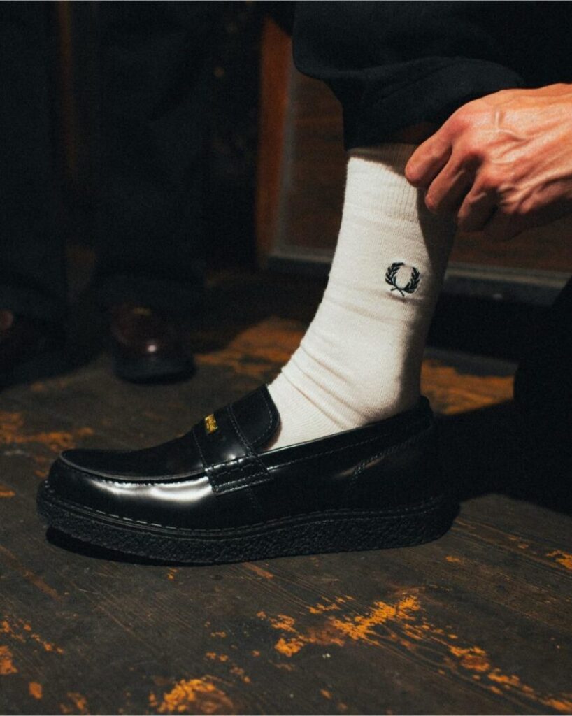 George Cox, 1906 im Northamptonshire gegründet, liefert seit jeher Schuhe, die mehr sind als nur Accessoires. Sie wurden von Teddy Boys über die Tanzflächen geschliffen, von Mods mit Maßanzügen kombiniert und von Punks als Brothel Creepers in die Luft gestampft. Es gibt nur wenige Marken, die durch so viele kulturelle Driftbewegungen getragen wurden und dabei immer ein Symbol geblieben sind. Fred Perry wiederum steht seit den 50ern selbst für eine präzise Mischung aus Sportlichkeit, Stil und Subkultur.