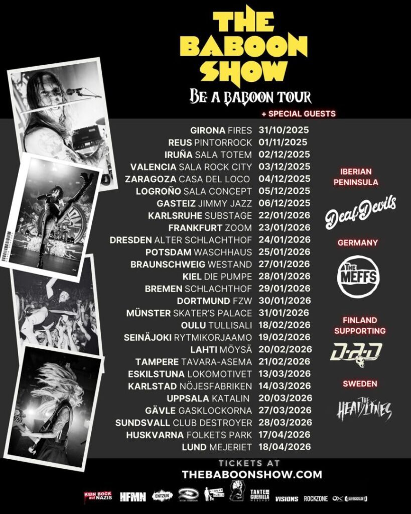 The Baboon Show haben sich schnell einen Namen als eine der besten Live-Bands Schwedens gemacht. Frühe Releases, energiegeladene Shows, treue Crowd – und musikalisch eine wilde Mischung aus Punk und Rock’n’Roll, die nach vorne geht wie ein Tritt aufs Gaspedal.