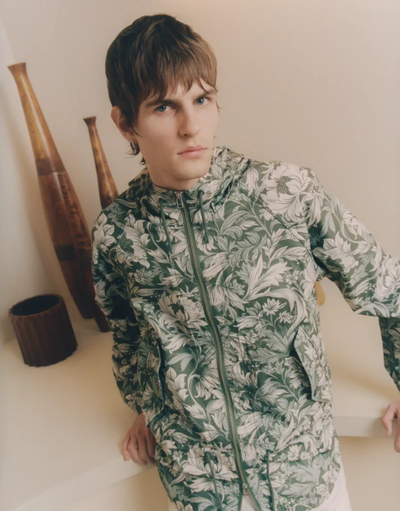 Historische Tiefe bringt der Bostall Print in die Kollektion. Inspiriert von den fließenden Formen des Jugendstils und dem Werk von William Morris, schlägt er eine Brücke zwischen Kunstgeschichte und zeitgenössischer Silhouette. Morris war nicht nur einer der prägendsten Gestalter des 19. Jahrhunderts, sondern auch ein unbequemer Denker. Als zentrale Figur der Arts&Crafts-Bewegung stellte er sich bewusst gegen den industriellen Fortschrittsglauben der viktorianischen Ära und plädierte für handwerkliche Qualität und künstlerische Integrität. Seine Entwürfe – von Textilien über Tapeten bis hin zu Buchdesigns – wirken bis heute nach und liefern hier den ästhetischen Unterbau für moderne Prints.