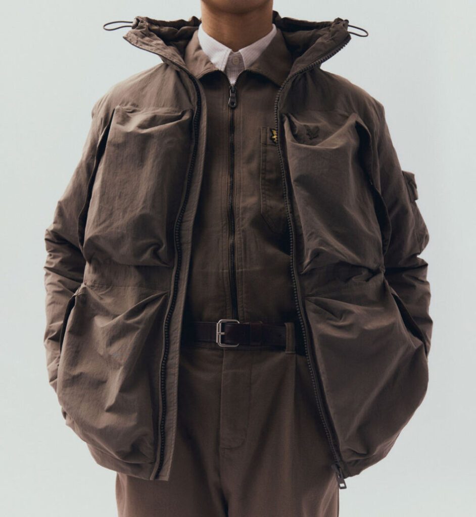 Auch bei Farben und Stoffen bleibt man diesem Ansatz treu. Klassische Lyle-&-Scott-Töne treffen auf gewaschene Nuancen und hellere Saisonfarben, die sich über die gesamte Kollektion hinweg wiederfinden. Die Materialien fühlen sich bewusst „taktisch“ an – Stoffe, die nicht nur gut aussehen, sondern im Alltag funktionieren.